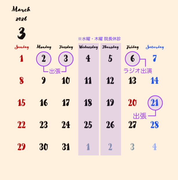 その他、獣医師の都合により休診になる場合がございます。その場合は、別途HPの「お知らせ」にてお知らせいたしますのでご確認ください。