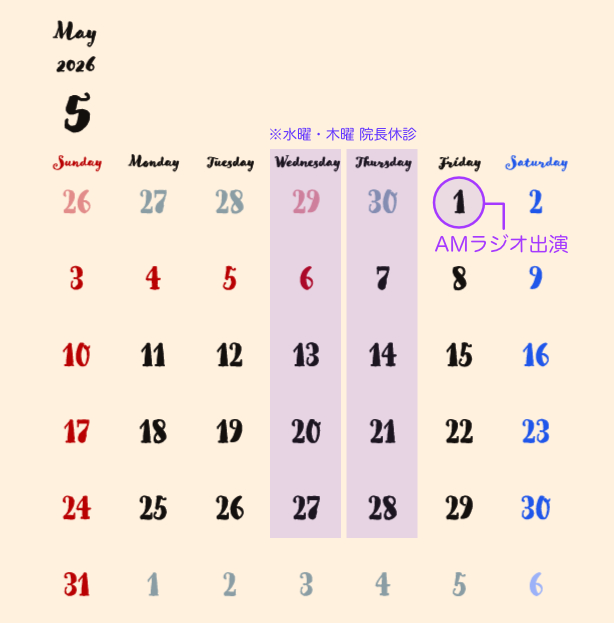 5月は、予定している夜間休診日はありません。